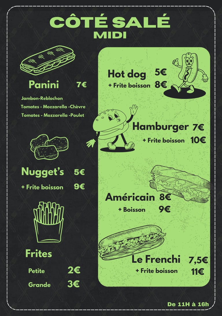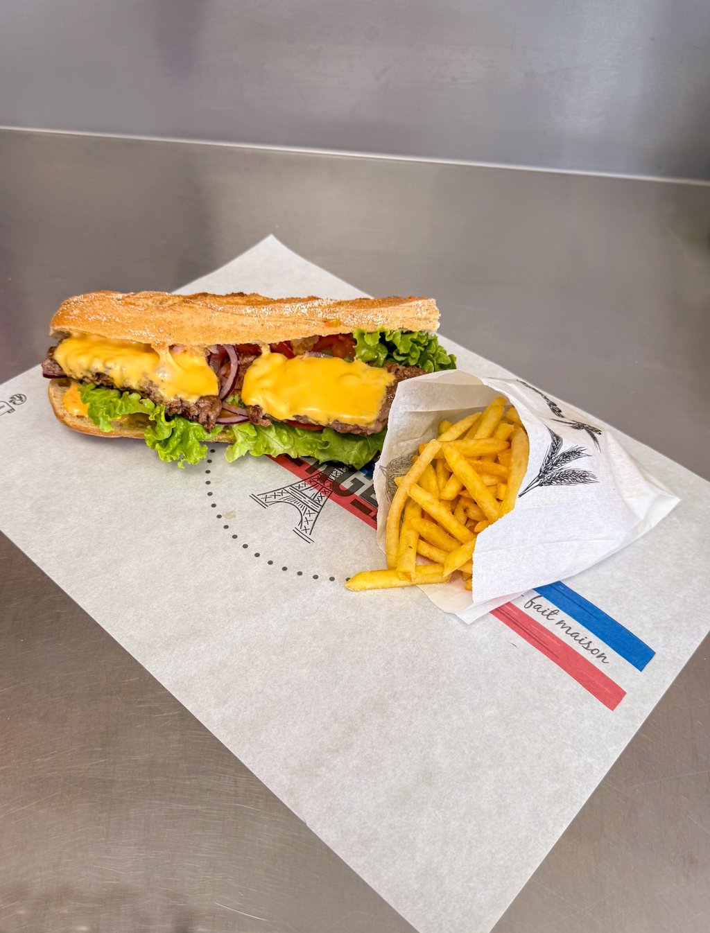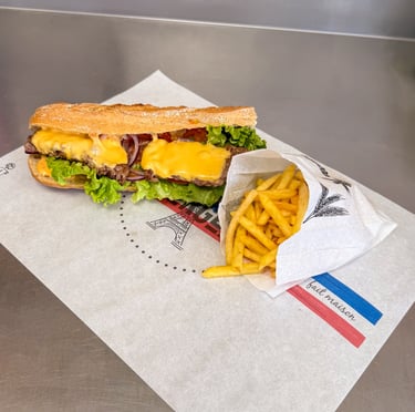 Dégustez nos paninis fondants, hamburgers généreux, et spécialités comme Le Frenchi ou l’Américain !