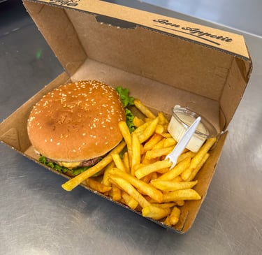 Notre snack convivial, installé dans un conteneur aménagé, régale petits et grands avec des burgers, paninis, frites croustillantes, crêpes, gaufres, churros et boissons fraîches.